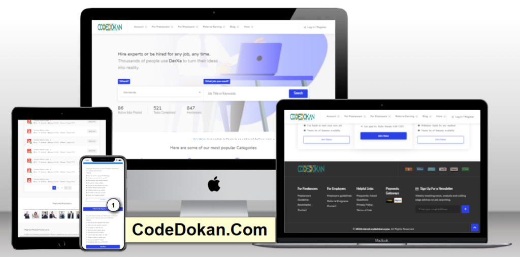 CodeDokan.Com Is the best designing platform, we’re develop any kind of wordpress theme, laravel or custom CMS Script, like we develop bangla newspaper, epaper, ptc ads, microjob, movie etc .